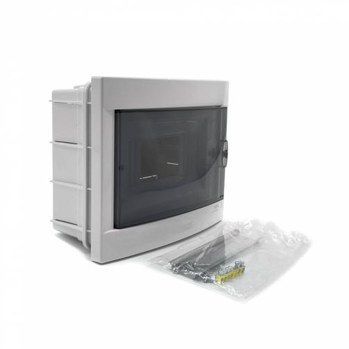 Бокс внутренний на 8 модулей 90912008 от VIKO Panasonic предназначен для установки модульных устройств, таких, как автоматические выключатели, УЗО, дифференциальные автоматы, таймеры, устройства управления освещением. Бокс обладает современным дизайном, идеально подходит к любому интерьеру. Надёжная конструкция и прочный пластик, удобные крепёжные приспособления гарантируют долгий срок службы и безопасность эксплуатации. Изделие изготавливается из качественного прочного и огнеупорного пластика. Лицевая панель выполнено из белого АБС-пластика, отличается ударопрочностью и термостойкостью. Оснащена прозрачной пластиковой крышкой, поворачивающаяся на 180°, с запирающим механизмом. Модель предназначена для скрытой установки и монтажа в ней до 8 модульных устройств в один ряд. Просторное внутреннее пространство короба обеспечивает удобство работы при монтаже. Комплектуется оцинкованной DIN-рейкой, нулевой шиной и крепёжными элементами. Температурный режим эксплуатации: от -15°С до +60°С. Габаритные размеры: 230х175х99.5 мм. 1 075,00 ₽ / шт