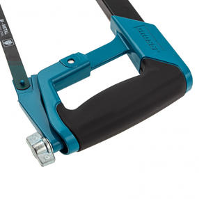Ножовка Gross «PIRANHA» 77600 длиной 300 мм, с обрезиненной рукояткой и захватом, используется для работ по металлу. Рез получается точным и аккуратным за счет рычажно-винтового механизма, обеспечивающего оптимальную силу натяжения полотна. Конструкция рамки инструмента позволяет устанавливать полотна под углом 45 и 90 градусов, что расширяет спектр выполняемых работ. Преимущества Долговечность — биметаллическое полотно с зубьями из быстрорежущей стали устойчиво к износу. Надежность — корпус ножовки изготовлен из прочного алюминиевого сплава. Высокое качество реза — шаг зуба полотна составляет 24 TPI, что позволяет быстро и точно распиливать заготовки даже из твердых металлов. Защита от коррозии — эмалевое покрытие предотвращает образование ржавчины при работе на открытом воздухе и в условиях повышенной влажности. Расширенный функционал — в раме имеется паз для установки лезвия, что дает возможность производить рез по типу ножа. Комфортная эксплуатация — прорезиненные рукоятка и захват обеспечивают надежный хват и уменьшают нагрузку на руку мастера. 2 979,00 ₽ / шт