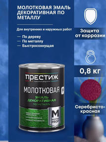 Эмаль ПРЕСТИЖ с молотковым эфектом быстросохнущая глянцевая серебристо-красная 0,8 л