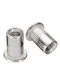 Заклепки представляют собой крепежные элементы в виде втулки либо стержня с закладной головкой с одного конца и с замыкающейся в процессе заклепки головкой с другого. Они представляют собой шестигранные либо цилиндрические втулки с опорным бортиком в верхней части и резьбой в нижней. Резьбовые заклепки классифицируют по форме головки на плоские и потайные, по профилю ножки – на круглые и шестигранные, по конфигурации борта – на открытые, потайные, малые, закрытые, большие. Изготавливаются из стали, нержавейки, меди, алюминиевого сплава. 24,00 ₽ / шт