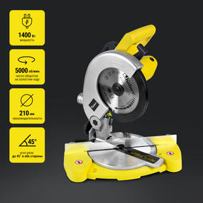 БОЛЬШОЙ АЛЮМИНИЕВЫЙ СТОЛ: гарантирует лучшую фиксацию обрабатываемого материала. ПИЛЕНИЕ ПОД УГЛОМ: можно выполнять пиление под вертикальным и горизонтальным углами, благодаря наличию поворотного стола и мобильного блока. КОМФОРТНАЯ РАБОТА: удобная эргономичная рукоятка обеспечивает удобство при работе. ЧИСТОТА РАБОЧЕГО МЕСТА: система пылеудаления с возможностью подключения пылесоса обеспечит чистоту во время работы. БЫСТРАЯ ЗАМЕНА ЩЕТОК: имеется прямой доступ к щеточному узлу, что позволяет легко заменить угольные щетки, не разбирая корпус инструмента. БЕЗОПАСНОСТЬ: блокировка кнопки запуска защищает инструмент от случайных включений. РАСШИРЕННАЯ КОМПЛЕКТАЦИЯ: пильный диск, задний упор с креплением, шестигранный ключ 2 шт., мешок для сбора опилок. ГАРАНТИЯ: гарантийный срок эксплуатации на изделие составляет 12 мес. Напряжение сети / Частота: 220±10%/50 В/Гц. Потребляемая мощность: 1400 Вт. Число оборотов на холостом ходу: 5000 об/мин. Диаметр пильного диска: 210 мм. Диаметр посадочного отверстия: 30 мм. Угол реза по горизонтали: до 45° в обе стороны. Угол реза по вертикали: до 45° в одну сторону. Максимальная глубина пропила: 50 мм (90°) / 30 мм (45°) Максимальная ширина пропила: 120 мм (90°) / 80 мм (45°) Длина сетевого кабеля: 2 м. Масса: 5,8 кг. Срок службы: 3 года. 9 300,00 ₽ / шт