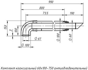Комплект коаксиальный 60*100-750 антиобледенительныйс хомутом (для старта) (1,7мм)
