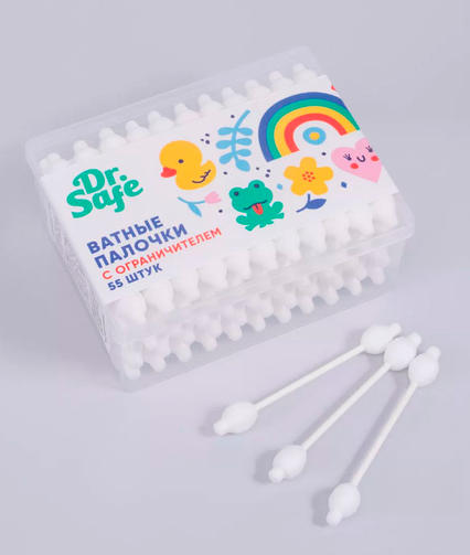 Палочки ватные с ограничителем 55шт Dr Safe