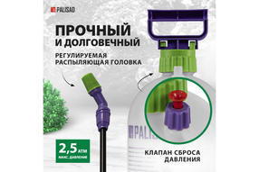 Ручной опрыскиватель Palisad 64750 с баком объемом 7 л, с насосом, шлангом и разбрызгивателем, используется для ухода за растениями на грядках, клумбах и в теплицах. Устройство предназначено для распыления пестицидов и внесения удобрений. Подача жидкости контролируется при помощи регулируемой распыляющей головки. Ремень для ношения на плече позволяет освободить руки для более комфортной работы. Преимущества PALISAD 64750 Прочность и долговечность — опрыскиватель изготовлен из износостойкого пластика. Возможность непрерывного распыления — на ручке предусмотрен фиксатор. Защита форсунки от засорения — водозаборный шланг оснащен фильтром. Безопасная работа — в случае возникновения избыточного давления срабатывает предохранительный клапан. Удобный контроль расхода жидкости — на корпус нанесена мерная шкала. Продуманная транспортировка — при помощи ручки помпового насоса опрыскиватель можно перемещать по участку. 2 983,00 ₽ / шт