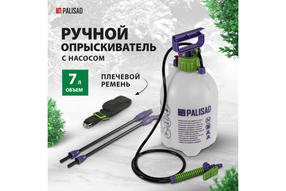 Опрыскиватель ручной, 7 л, с насосом, шлангом, разбрызгиватель Palisad 64750