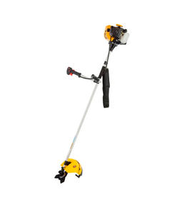 Бензиновый триммер Denzel DT-52 96226 оснащен экономичным, надежным и простым в эксплуатации двигателем мощностью 3 л.с. и объемом 52 см3, имеет неразъемную штангу и поставляется комплектом из 2 частей. Оптимален для подравнивания газона, избавления от травы с жесткими древовидными стеблями (полыни, крапивы, лебеды, борщевика), а также срезания кустарника и молодых побегов деревьев со стволами диаметром до 10 мм. Эффективно скашивает траву в труднодоступных местах: вдоль кромок дорожек, стен строений и вокруг деревьев. В комплект поставки входит катушка с леской для невысокой травы любой густоты, а также пильный диск для высокой сухой травы, лопухов, крапивы и борщевика. Испытаниями подтверждена возможность безотказной работы на протяжении не менее 80 часов. Преимущества Высокий ресурс — хромированный цилиндр двигателя, закаленный коленвал и поршень оптимизированной конструкции в несколько раз продлевают срок службы техники. Полуавтоматическая система подачи лески — достаточно слегка ударить катушкой о землю, не останавливая двигатель. Быстрый старт — благодаря усиленному классическому стартеру и праймеру (топливному насосу) двигатель легко запускается даже после долгого простоя. Низкий расход топлива — полного бака на 0,85 л хватает почти на 45 мин работы. Удобный контроль уровня топлива — бак изготовлен из полупрозрачного пластика. Надежность — прочная штанга выполнена из алюминия толщиной 1,5 мм. Удобное управление — все кнопки находятся на правой рукоятке под ладонью. Безопасность — пластиковый кожух защищает пользователя от вылетающей травы, камней, веток и мелких частиц. Продуманная конструкция — благодаря винтовому креплению крышки фильтр не выпадает во время работы, при необходимости его легко можно заменить. Эргономичность — велосипедные асимметричные ручки с прорезиненными рукоятками удобно лежат в руках. Комфортная работа — инструмент хорошо сбалансирован и оснащен системой гашения вибраций. Уменьшенная нагрузка на плечи и спину — триммер весит 7,6 кг и комплектуется наплечным ремнем. Дополнительные возможности — можно приобрести и установить на триммер диски Denzel 96323, 96325 для быстрого удаления растительности с жесткими стеблями, 96328 для скашивания молодых побегов кустарника диаметром до 3 мм. Подтвержденное качество — производитель предоставляет расширенную 3-летнюю гарантию на заводской брак. 10 200,00 ₽ / шт