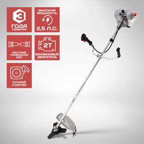 МОЩНЫЙ ДВУХТАКТНЫЙ ДВИГАТЕЛЬ: обеспечивает стабильную работу и высокую производительность. УДОБНОЕ УПРАВЛЕНИЕ: удобная велосипедная рукоятка и наплечный ремень снижают утомляемость при работе. ПРЯМАЯ НЕ РАЗБОРНАЯ ШТАНГА: цельная штанга и жесткий приводной вал без дополнительных соединителей обеспечат максимальную передачу крутящего момента и длительный срок службы. ПРАЙМЕР: насос для подкачки топлива, облегчает запуск холодного двигателя. КАЧЕСТВЕННЫЕ КОМПЛЕКТУЮЩИЕ: при изготовлении триммера использованы только первичные материалы, производительные карбюраторы, хромированные цилиндры и прочие высококачественные комплектующие. КОМПЛЕКТАЦИЯ: емкость для приготовления смеси, плечевой ремень, ключ шестигранный Г-образный (2 шт), ключ свечной, ключ рожковый, отвертка, набор крепежа, катушка с леской, нож. 7 899,00 ₽ / шт