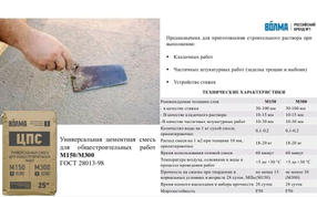 Количество воды на 1 кг сухой смеси: ориентировочно 0,1-0,2 Расход смеси на 1 м2 при толщине 10 мм: ориентировочно 18-20 кг Время использования готовой смеси: 60 минут Температура воздуха, основания и воды в процессе проведения работ: +5 до +30 °С Прочность на сжатие при твердении в нормальных условиях в возрасте 28 суток, МПа: не менее 15 Время полного высыхания и набора прочности: 28 суток 295,00 ₽ / шт