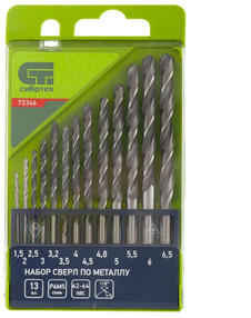Набор сверл по металлу, 1,5-6,5 мм, 13 шт, Р6М5, пластиковый кейс, Сибртех 72346