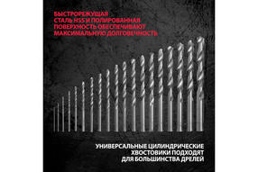 Набор сверл по металлу, 1-10 мм (через 0,5 мм), HSS, 19 шт, мет коробка, цилиндр хв Matrix 72388