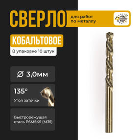 Сверло по металлу 3,0мм ц/х Р6М5К А1 (2300-0155) кобальт 31030 10шт/уп