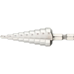 Сверло ступенчатое по металлу 4-6-8-10-12-14-16-18-20 мм, Р6М5, шестигранный хвостовик Барс 72361