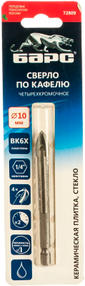 Сверло по керамической плитке 10 мм, крестовая пластинка, шестигранный хвостовик Барс 72809