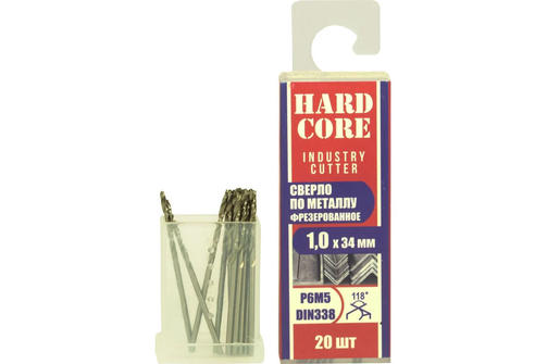 Сверло по металлу фрез. Р6М5 1.0х34мм 20 шт/уп "Hardcore" Industry cutter 146010 цена за шт.