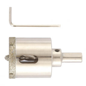 Универсальное алмазное сверло по керамограниту Matrix 726403, 40 х 67 мм, с 3-гранным хвостовиком, применяется для сверления стекла, плитки, кафеля. А за счет высокой концентрации алмазов в режущем слое оно легко справляется с выполнением отверстий в керамограните. Сверло рассчитано на профессиональное использование с дрелями и шуруповертами. Водяное охлаждение в процессе работы значительно повысит срок его службы. Преимущества Высокий ресурс — сверло имеет увеличенный алмазный слой и усиленный корпус. Антикоррозионное покрытие — при мокром сверлении на сверле не образуется ржавчина. Трехгранный хвостовик — сверло не прокручивается в патроне дрели. 1 962,00 ₽ / шт