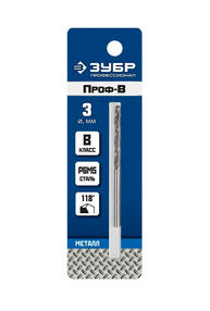 ЗУБР ПРОФ-В, 3.0 х 61 мм, сталь Р6М5, класс В, сверло по металлу, Профессионал (29621-3)
