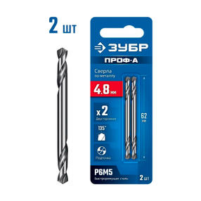 ЗУБР Профессионал 4.8х62мм,Сверло двухстороннее по металлуПроф-А,стальР6М5,классА 2шт/уп цена за шт