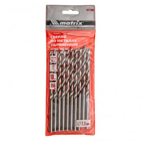 Сверло по металлу, 7,5 х 156 мм, полированное, удл., HSS, 10 шт. цил. хв.// Matrix 715075 цена за шт