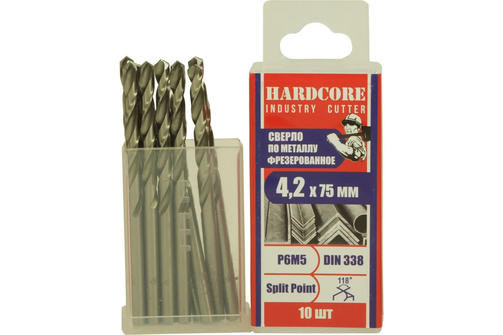 Сверло по металлу фрез. Р6М5 4.2х75мм 10 шт/уп "Hardcore" Industry cutter 146042 цена за шт.