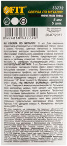 Сверла по металлу HSS полированные 8,0 мм (5 шт.) 33772 цена за шт.