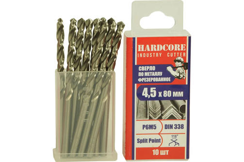 Сверло по металлу фрез. Р6М5 4.5х80мм 10 шт/уп "Hardcore" Industry cutter 146045 цена за шт.