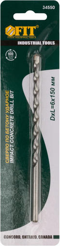 Сверло победитовое ударное, цилиндрический хвостовик (для бетона, кирпича) 6x150 мм 34550