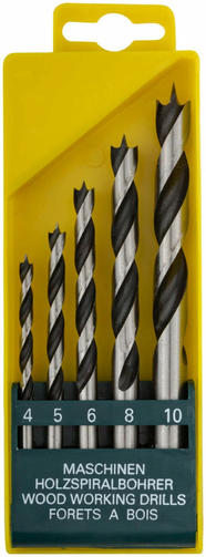 Набор сверл по дереву, CrV Профи, пластиковый бокс, 5 шт. (4-5-6-8-10 мм) 36099