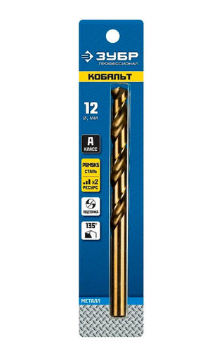 ЗУБР Кобальт, 12.0 х 151 мм, сталь Р6М5К5, класс А, сверло по металлу, Профессионал (29626-12)