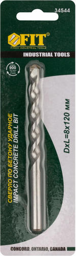 Сверло победитовое ударное, цилиндрический хвостовик (для бетона, кирпича) 8х120 мм 34544