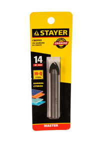 STAYER 14 мм, 2х кромка, цилиндр хвостовик, Сверло по стеклу и кафелю (2986-14)