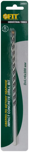 Сверло победитовое ударное, цилиндрический хвостовик (для бетона, кирпича) 6х200 мм 34551