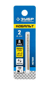ЗУБР Кобальт, 2.0 х 49 мм, сталь Р6М5К5, класс А, сверло по металлу, Профессионал (29626-2)