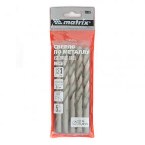 Сверло по металлу,10,5 мм, полированное, HSS, 5шт.цилиндрический хвостовик// Matrix 72005 цена за шт