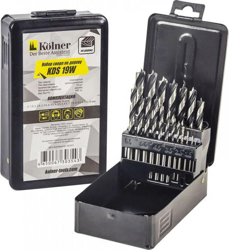 Kolner KDS 19W Набор сверл по дереву в металлическом кейсе 19шт