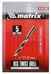 Сверло по металлу, 11 мм, полированное, HSS, 5 шт.цилиндрический хвостовик// Matrix 72010 цена за шт