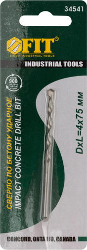 Сверло победитовое ударное, цилиндрический хвостовик (для бетона, кирпича) 4х75 мм 34541