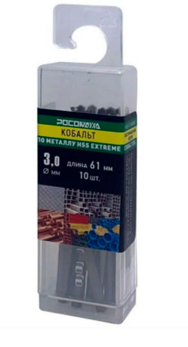 Сверло по металлу 3,0х61мм (10шт) Extreme COBALT 5% (HSS-G P6M5K5) "РОСОМАХА" 705030, цена за шт 160,00 ₽ / шт