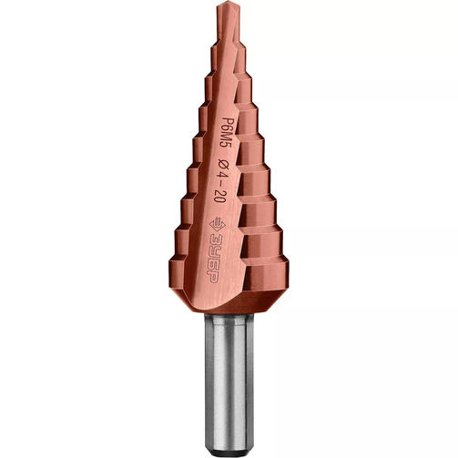 29672-4-20-9 ЗУБР Кобальт, 4-20 мм, 9 ступеней, сталь Р6М5, ступенчатое сверло, Проф