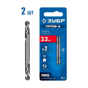 ЗУБР Профессионал3.3х49мм,Сверло двухстороннее по металлуПроф-А,сталь Р6М5,классА,2шт/уп цена за шт