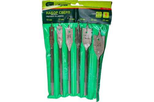 Набор сверл перовых по дереву, 10-12-16-18-20-25 мм, 6 шт, шестигр.хвостовик//СИБРТЕХ 704155