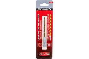 Сверло по металлу, 3,8 мм, HSS, нитридтитановое покрытие, 6-гранный хвостовик// Matrix 717382