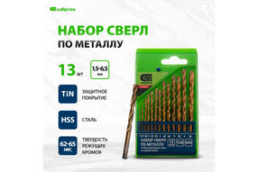 Набор сверл по металлу Сибртех 723867 с нитридтитановым покрытием, 1,5-6,5 мм (через 0,5 мм, 3,2 мм, 4,8 мм), из стали HSS, состоит из 13 шт. и предназначен для получения отверстий в заготовках из черных металлов — стали, чугуна. Включает оснастки самых востребованных размеров, будет полезен во время ремонтных работ, а также дома, на даче или в гараже. 720,00 ₽ / шт
