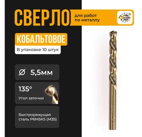 Сверло по металлу 5,5 мм ц/х Р6М5К5 А1 кобальт 31055 (10шт/уп)