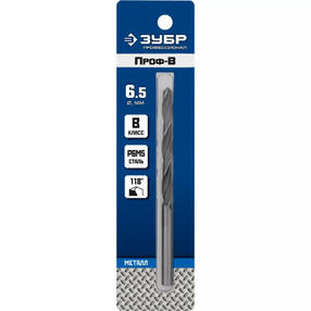 ЗУБР ПРОФ-В, 6.5 х 101 мм, сталь Р6М5, класс В, сверло по металлу, Профессионал (29621-6.5)