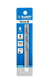 ЗУБР ПРОФ-В, 6.0 х 93 мм, сталь Р6М5, класс В, сверло по металлу, Профессионал (29621-6)