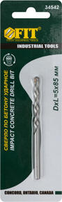 Сверло победитовое ударное, цилиндрический хвостовик (для бетона, кирпича) 5х85 мм 34542
