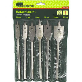 Набор сверл перовых по дереву, 10-12-16-18-20-25 мм, 6 шт, шестигр.хвостовик//СИБРТЕХ 704155
