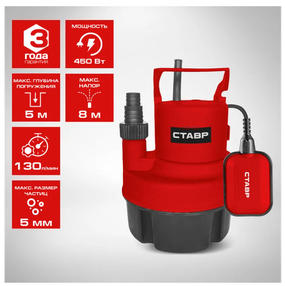 Насос погружной дренажный 450Вт, Ставр НПД-450ГВ, откачивание воды до 3 мм, производительность 130л
