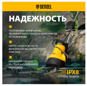 Дренажный насос для чистой воды DPB400, 400 Вт,подъем 11м,5500 л/ч Denzel 97266