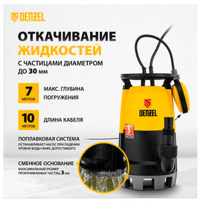 Дренажный насос для чистой грязной воды DP-450S, 450 Вт,напор 6м,12000 л/ч Denzel 97267